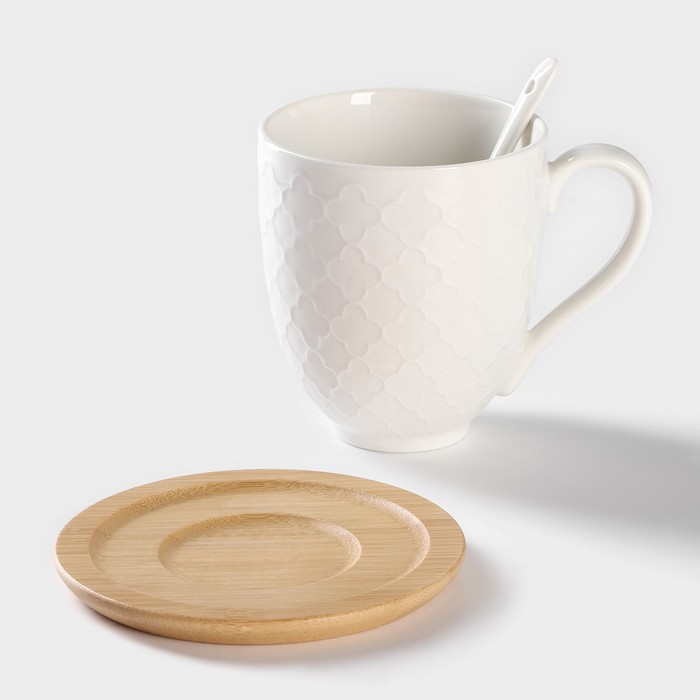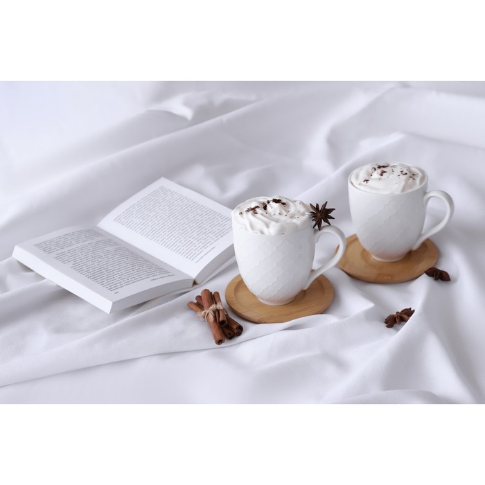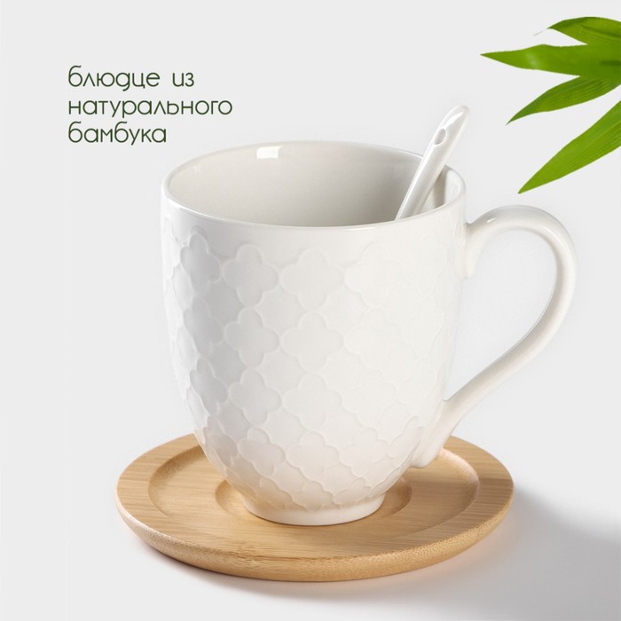 Набор керамический чайный на бамбуковой подставке BellaTenero, 6 предметов: 2 чашки 350 мл, 2 деревянных блюдца d=12 см, 2 ложки, цвет белый за 768.90 ₽ Купить оптом и в розницу на tijorat.com | Быстрая доставка | скидки