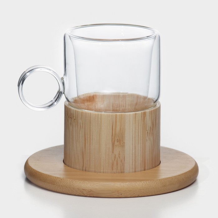 Сервиз чайный из стекла «Мадера», 12 предметов: 6 кружек 100 мл, 6 бамбуковых подставок d=11 см за 2528.90 ₽ Купить оптом и в розницу на tijorat.com | Быстрая доставка | скидки