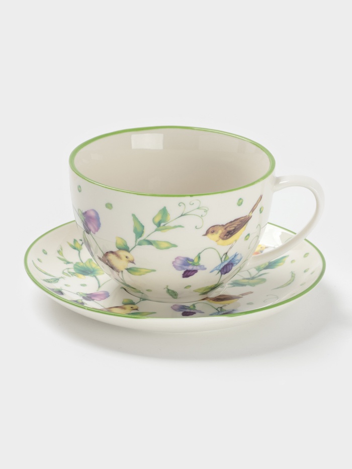 Сервиз фарфоровый чайный Доляна «Зелёный сад», 12 предметов: 6 чашек 220 мл, 6 блюдец d=13 см
