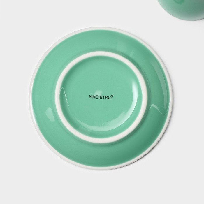 Кофейная пара фарфоровая Magistro Coffee time, 80 мл, цвет бирюзовый