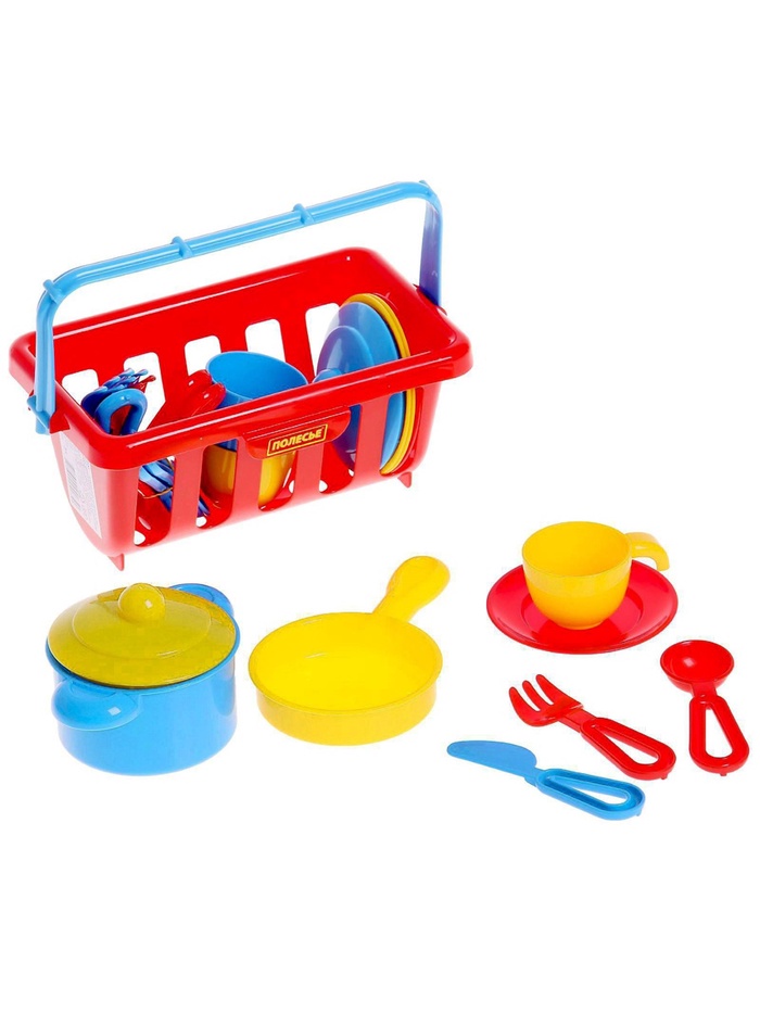 Корзина с детской посудой TOP chef на 4 персоны, цвета МИКС