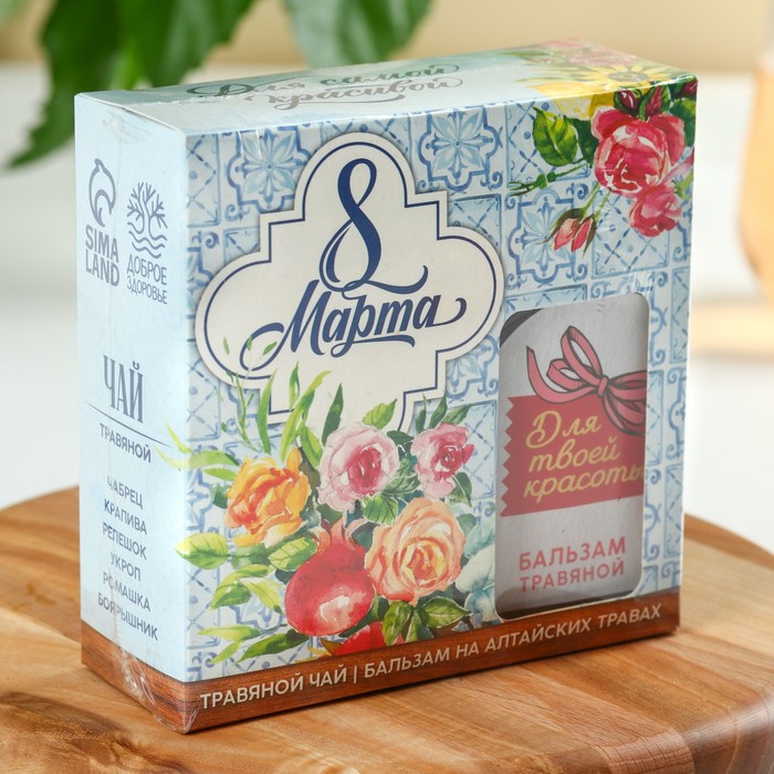 Набор «8 марта»: чай травяной 20 г., бальзам природный 100 мл.