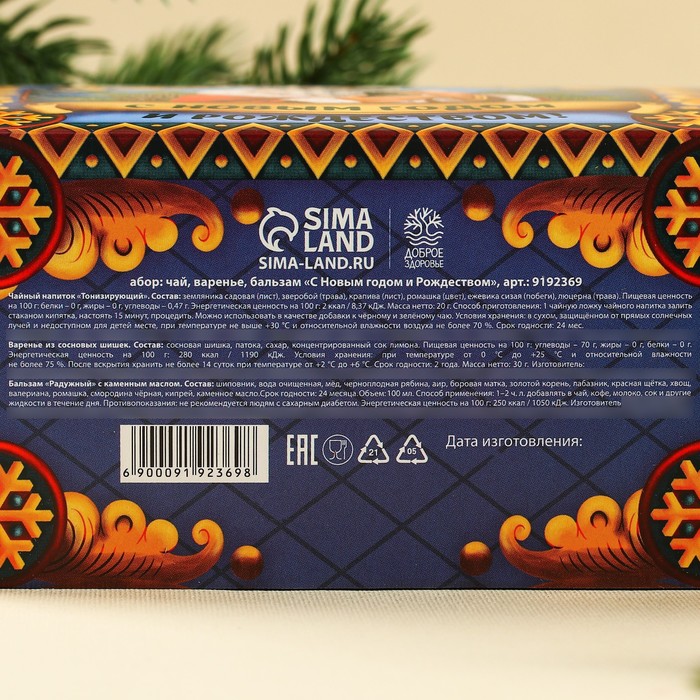 Набор «Будьте здоровы»: чай тонизирующий 20 г., варенье из сосновых шишек 30 г., бальзам 100 мл.