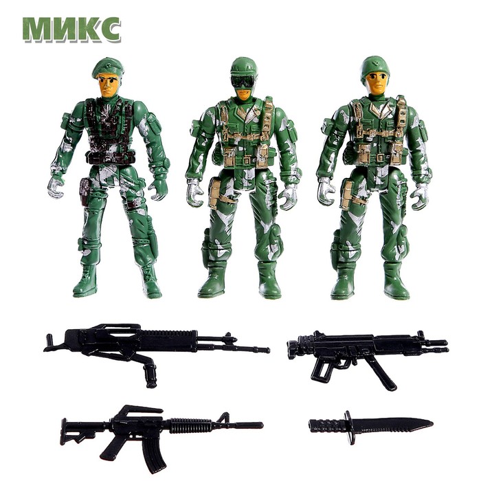 - Высота одного солдатика — 9 см. В наборе 3 шт.
