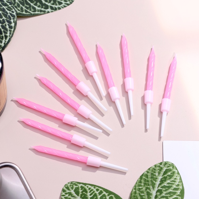 Свечи для торта "Неон", 10 шт, розовые 5 см