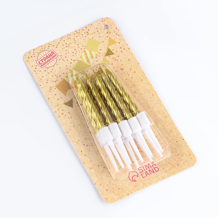 Свечи в торт "Спираль", 10 шт, средние, 5 см, золотой металлик