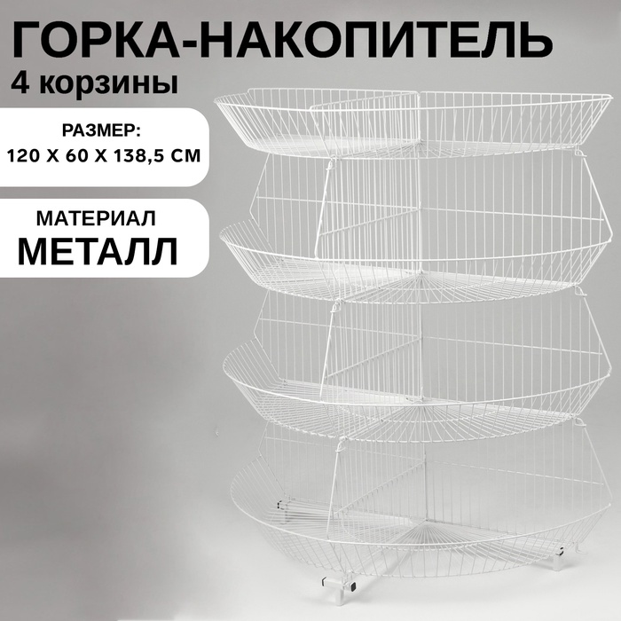 Горка-накопитель из четырёх корзин, полукруглая, 120×60×138.5 см, белая