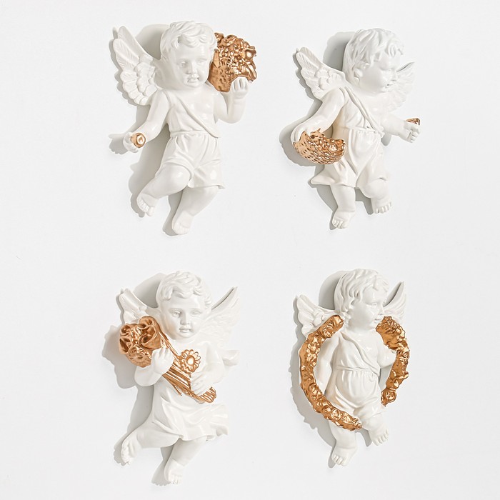 Декор настенный "Ангелочки" 4 штуки 20.5 x 14.5 x 5.5 см, белый с золотом