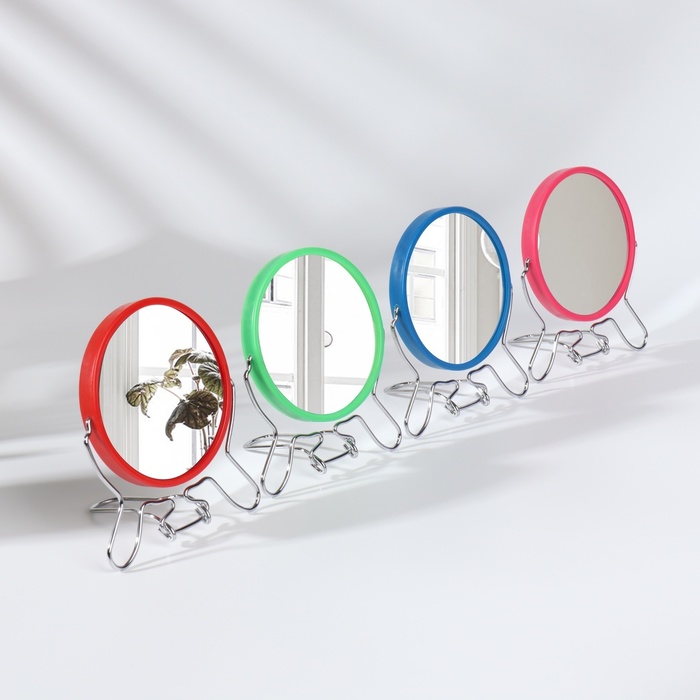 Зеркало настольное - подвесное «Круг», двустороннее, с увеличением, d зеркальной поверхности 9 см, цвет МИКС