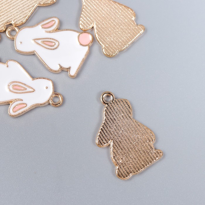 Декор для творчества металл, эмаль "Зайчик с розовым хвостиком" белый 2,2х1,3 см