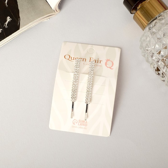 Невидимка для волос "Волшебный блеск" (набор 2 шт) прямая, 5,5 см, серебро