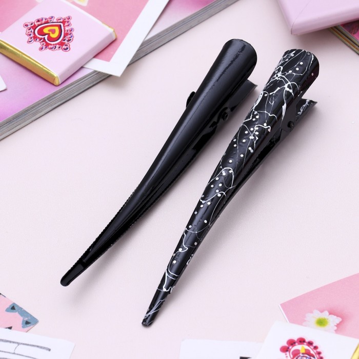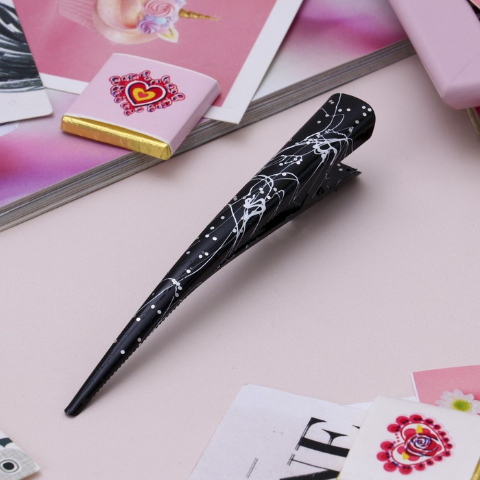 Зажим для волос "Брызги блеска" 12,5 см, чёрно-белый