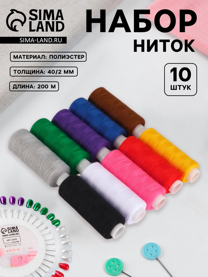 Набор ниток «Радуга», 40/2, 200 м, 10 шт, разноцветный за 200.00 ₽ Купить оптом и в розницу на tijorat.com | Быстрая доставка | скидки