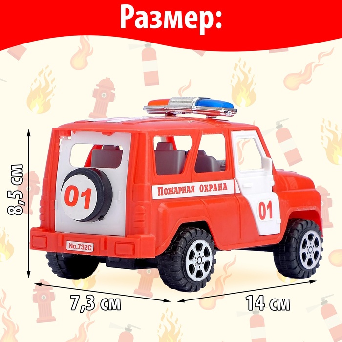 Пожарная охрана спешит на помощь! Инерционный пожарный внедорожник с открывающимися дверями – это настоящий автомобиль для маленьких спасателей, которые мечтают стать героями. Этот яркий красный джип словно живой: он мчится вперёд, готовый тушить пожары, спасать людей или выполнять важные задания прямо у вас дома.