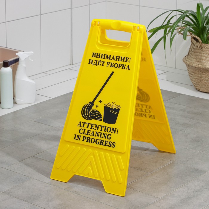 Знак «Внимание! Идёт уборка», 61×30 см, пластик, цвет жёлтый