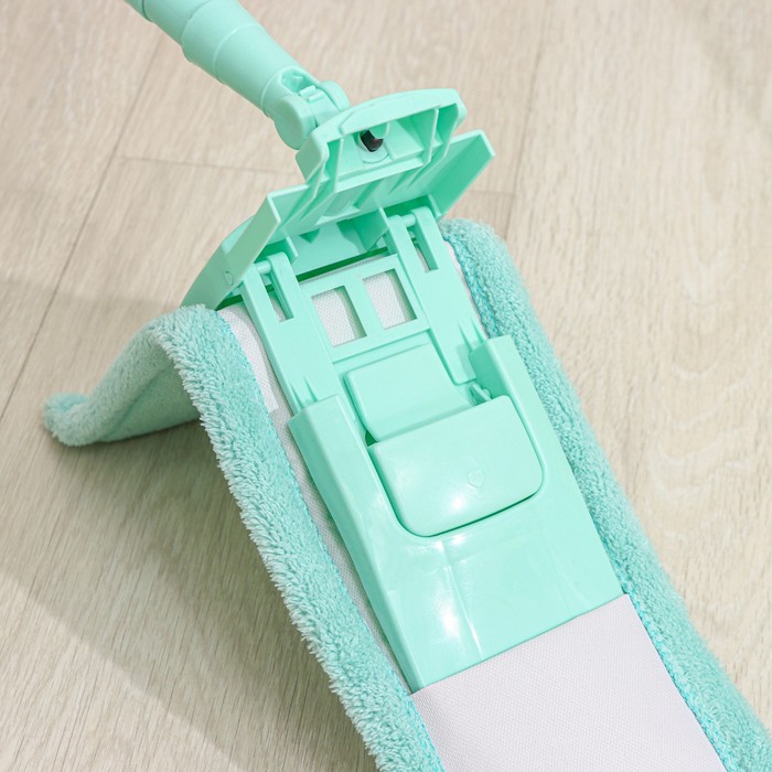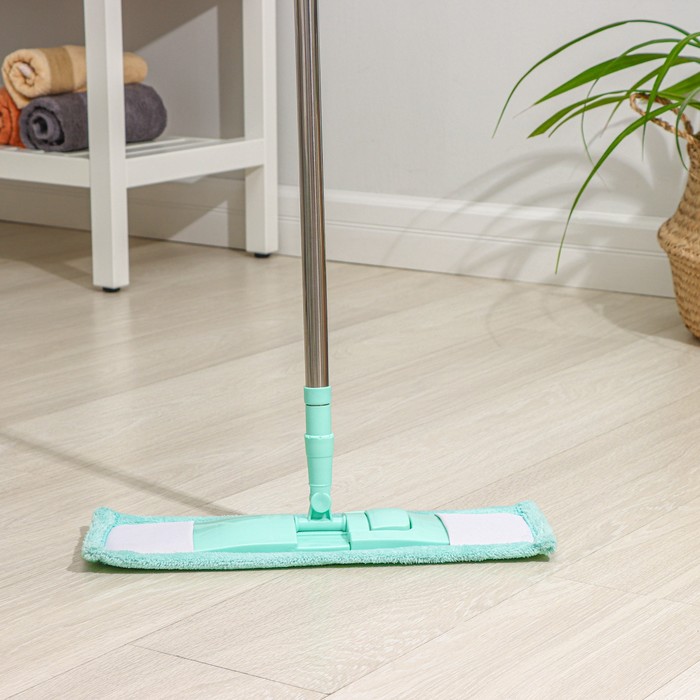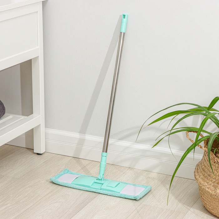 Швабра для мытья пола плоская Доляна, насадка из микрофибры 40×10 см, телескопическая стальная ручка 68-121 см