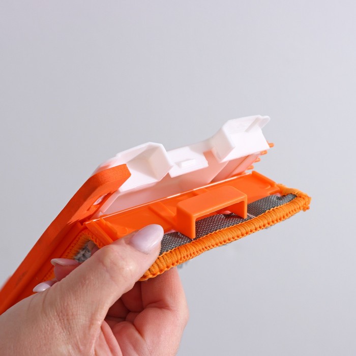 - Мягкая насадка из микрофибры прочно крепится к платформе швабры на специальные пазы и на липучки, она деликатно очищает поверхность пола, отлично впитывает воду, не оставляет разводов, ворсинок и не царапает поверхность.