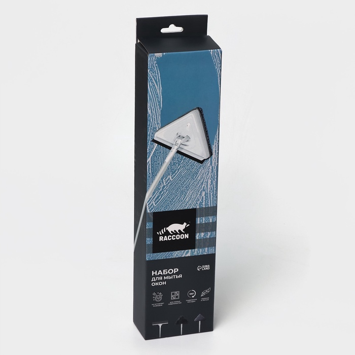 Набор для мытья окон Raccoon: поролоновая насадка, две насадки из микрофибры с держателем