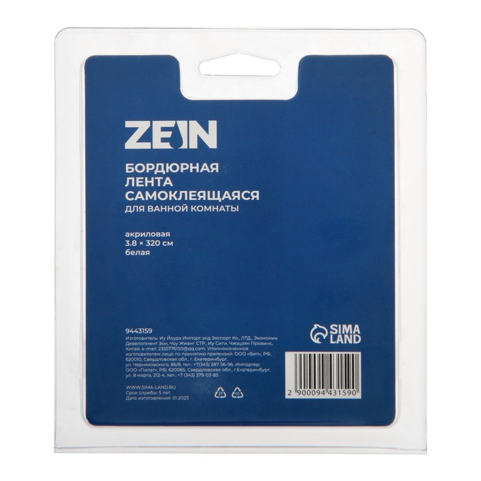 Лента бордюрная ZEIN, самоклеящаяся, для ванной комнаты, 3.8 х 320 см, акриловая, белая