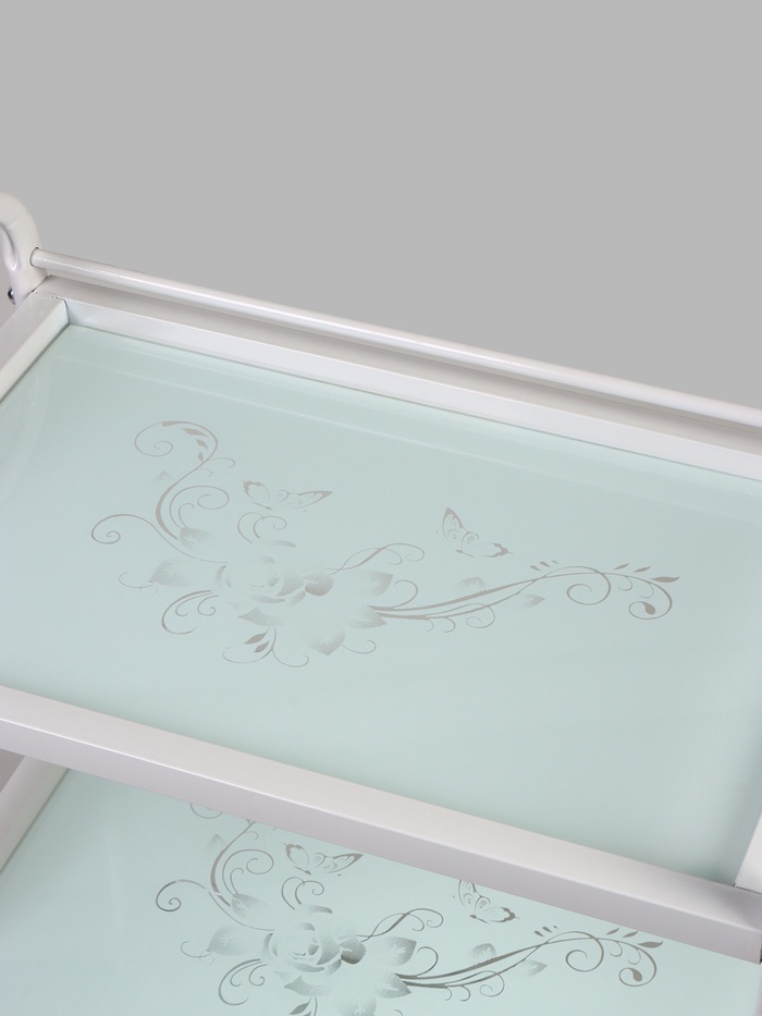 Столик косметолога 52*32*80, на колесах, 3 полки, цвет белый (РИСУНОК НА СТЕКЛЕ МИКС)