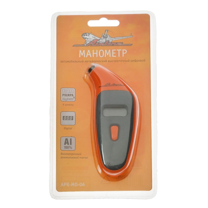 Манометр цифровой Airline, с подсветкой, металлический, до 7 атм