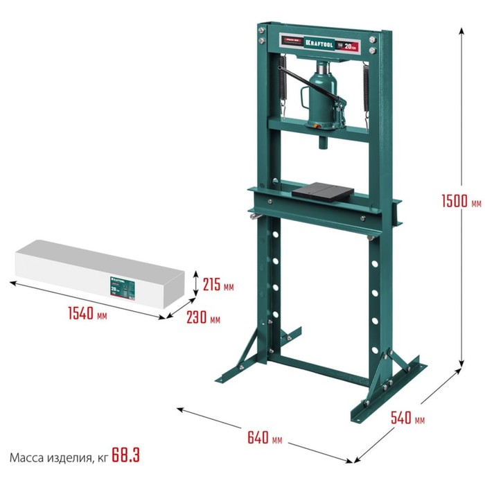 Пресс гидравлический ЗУБР 43470-20, с домкратом и возвратными пружинами, 20 т