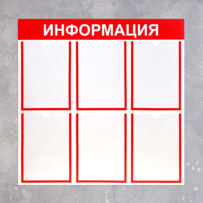 Информационный стенд «Информация» 6 плоских карманов А4, цвет красный