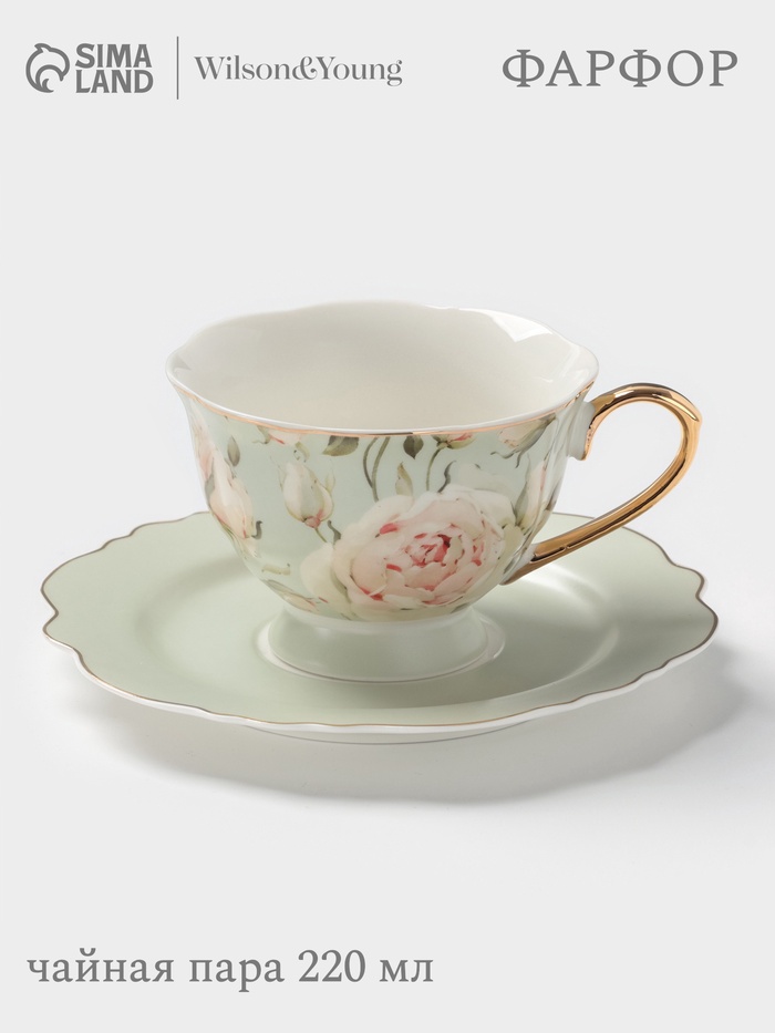 Чайный сервиз WY Grace, 20 предметов, чайник 1000 мл, 6 кружек 250 мл, 6 блюдец d=15,5 см, 6 тарелок пирожковых d=20,5 см, фарфор