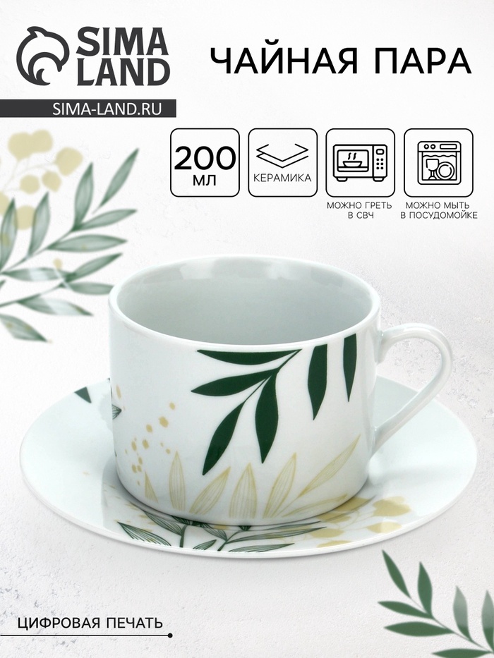 Чайная пара фарфоровая Доляна Organic Gold, 2 предмета: чашка 230 мл, блюдце d=16 см, цвет белый