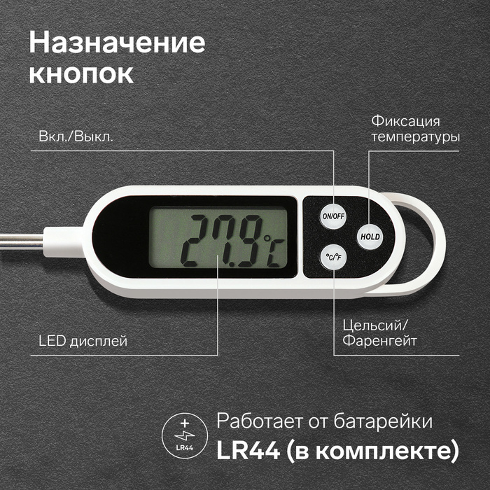 Термощуп кухонный Luazon LTR-01, максимальная температура 300 °C, от LR44, белый за 200.00 ₽ Купить оптом и в розницу на tijorat.com | Быстрая доставка | скидки