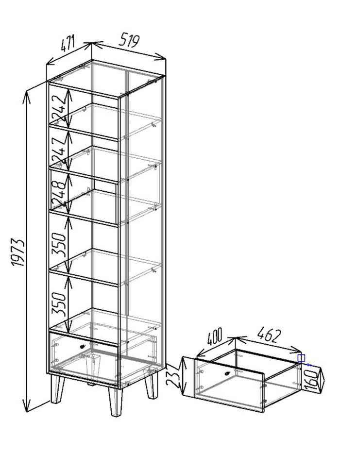 Стеллаж с ящиками "Story" 52*47*198 БлШ-Тс, (В), золото