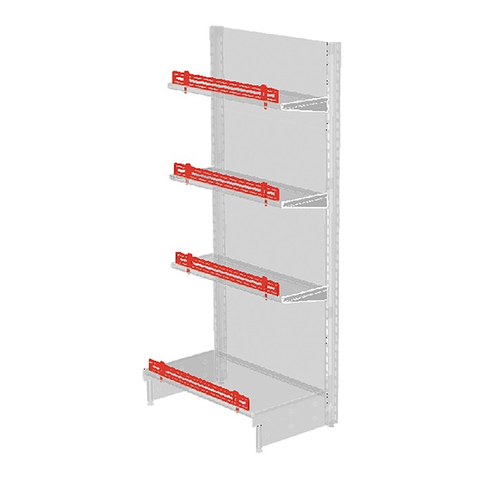 Переднее ограждение размером 1 000 × 50 мм предназначено для полки торгового стеллажа. Препятствует падению товаров, при этом не мешает покупателям оценивать продукцию.