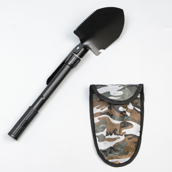 Лопата туристическая, складная, L = 62 см, пилка, металлический черенок с ручкой, в чехле, МИКС