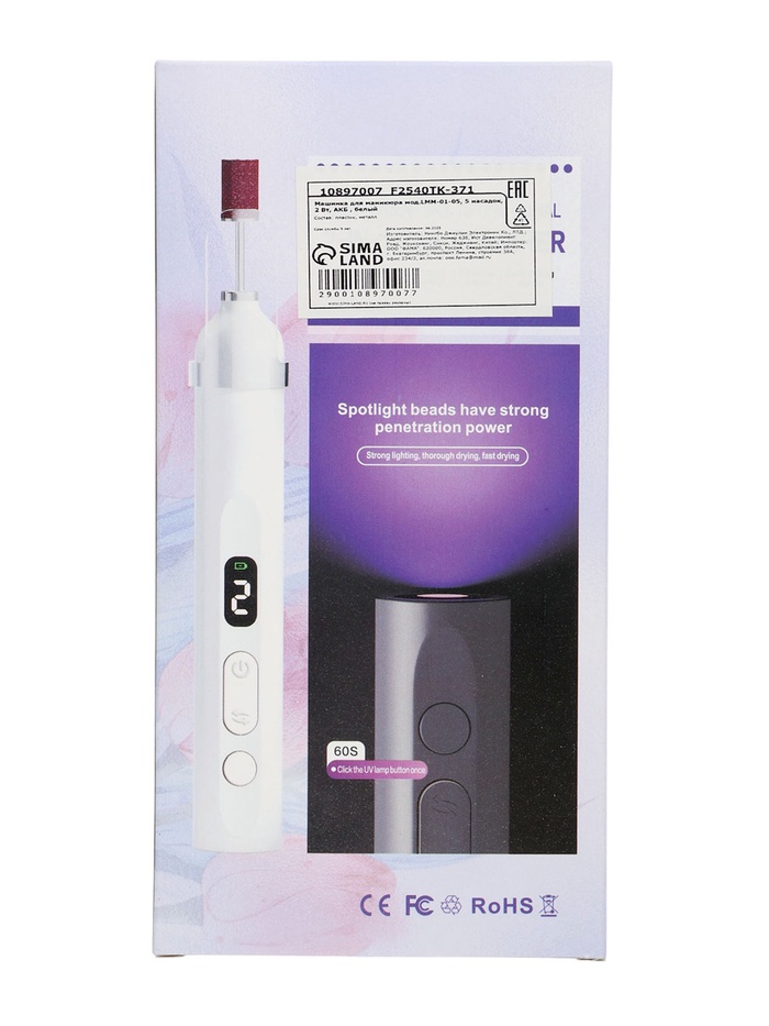 Машинка для маникюра LMM-01-05, 5 насадок, 2 Вт, АКБ , белый