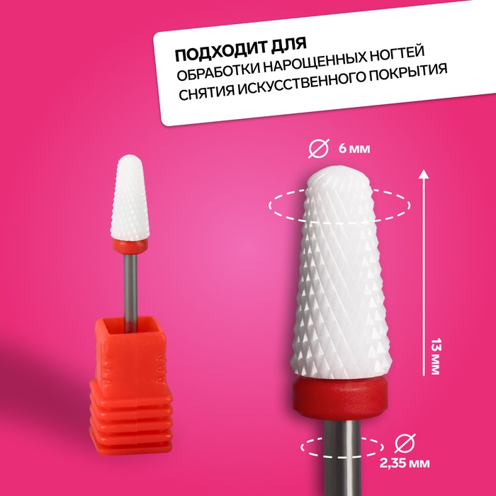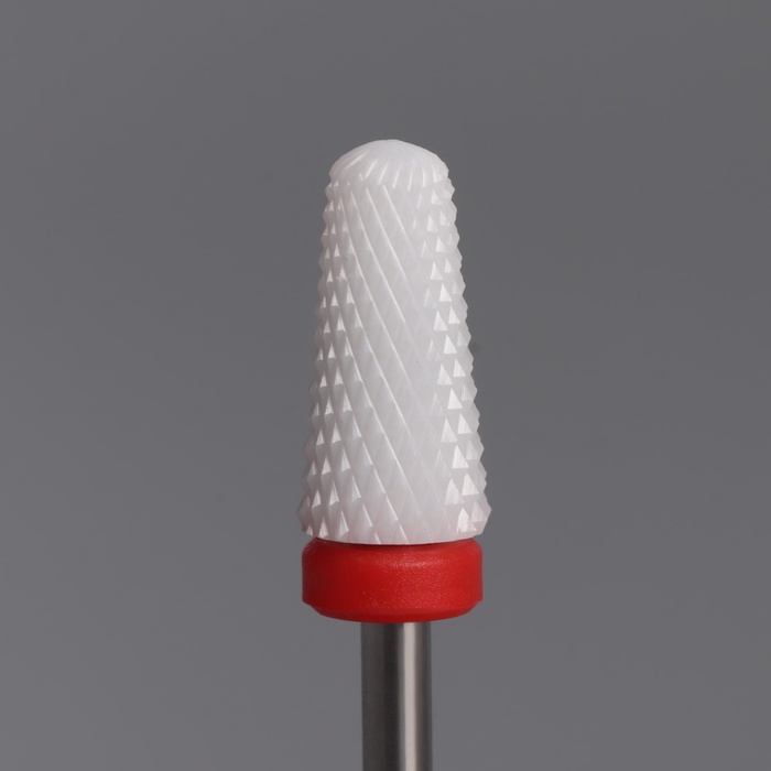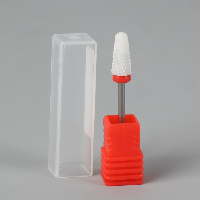 Фреза керамическая для маникюра «Конус», мелкая нарезка, 6 × 13 мм, в пластиковом футляре, цвет белый
