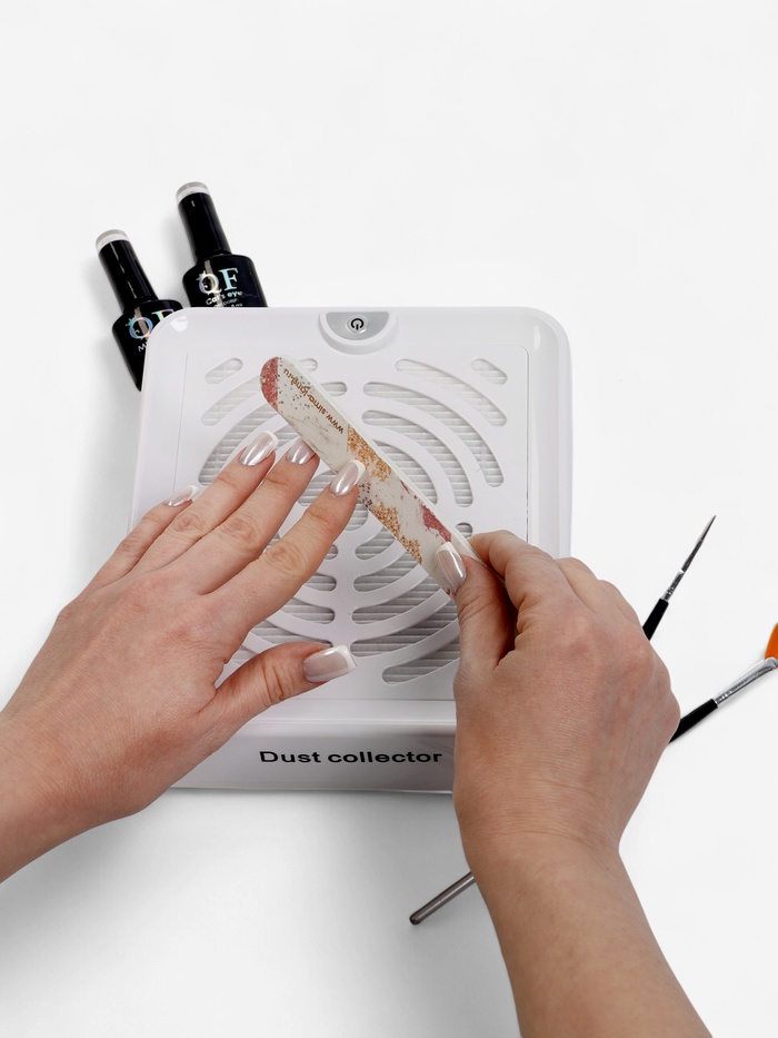 Настольный пылесос предназначен для поддержания чистоты на рабочем столе мастера по маникюру. Мощный вентилятор собирает ногтевую пыль во время опила и собирает её в многоразовый фильтр. Для безопасности на вентилятор установлена решетка, которая не даст вам пораниться во время работы.
