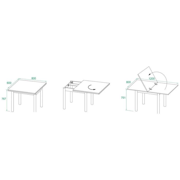 Стол кухонный раскладной, 800(1200) × 600(800) × 770 мм, цвет белый