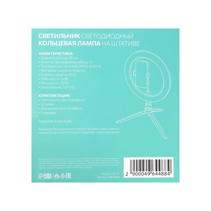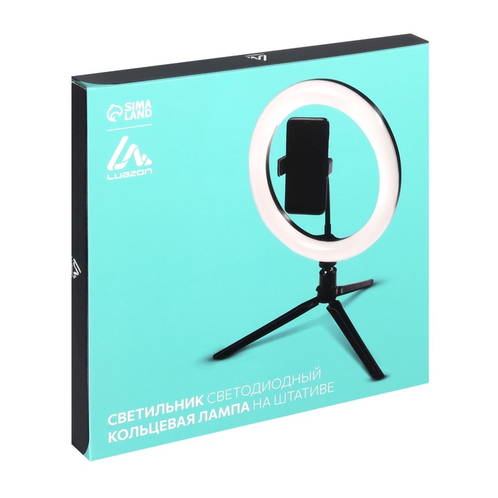 Светодиодная кольцевая лампа на штативе от LuazON поможет создать равномерное освещение для съёмок фото и видео. Штатив позволяет зафиксировать смартфон и регулировать его угол наклона. Для работы подключите устройство к адаптеру питания или к USB-розетке. Меняйте режимы и изменяйте яркость с помощью пульта на проводе.