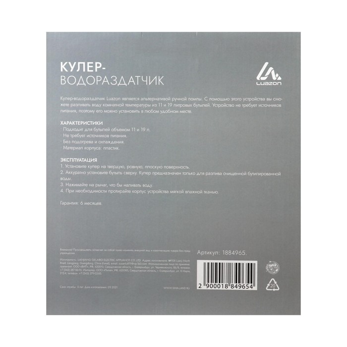 Кулер-водораздатчик LuazON — альтернатива ручной помпы для более удобного получения воды из бутылей.