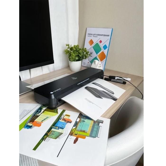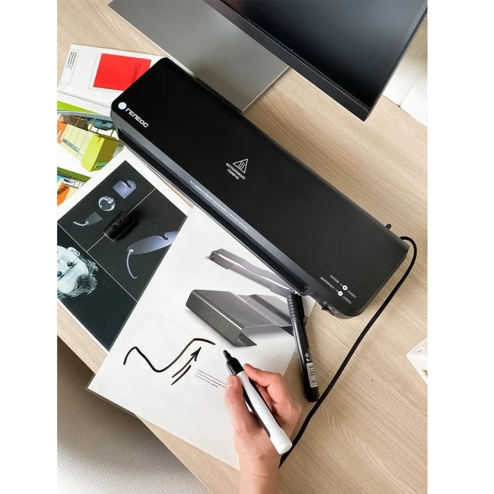 Заламинирует необходимый материал со скоростью 300 мм/сек. Фиксированная температура горячего ламинирования позволяет использовать пленки плотностью от 75 до 150 мкм. Чем больше мкм в пленке, тем жестче будет готовый материал. Так же, данная модель имеет функцию холодного ламинирования, что пригодится для ламинирования слишком чувствительных поверхностей: официальные документы с печатями и подписями, свидетельства, паспорта и тд.