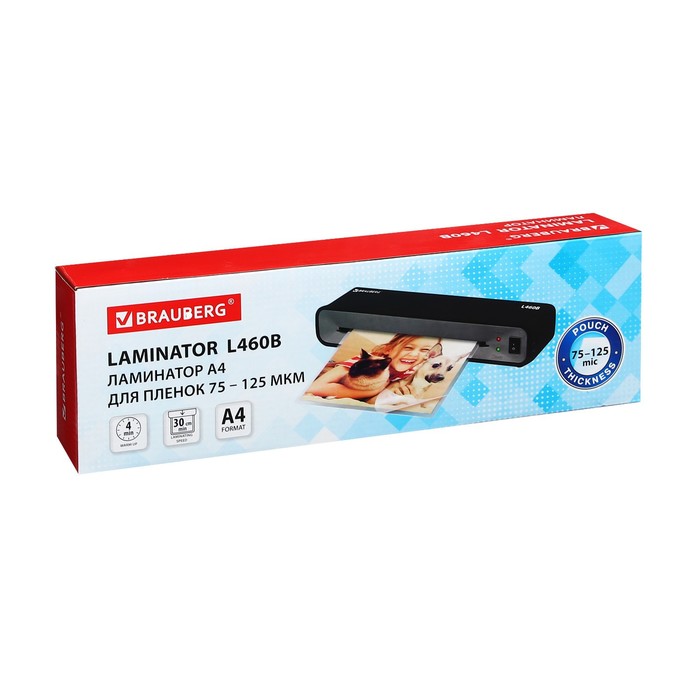Ламинатор A4 75-125 мкм, 2 вала, скорость 30 см/мин, BRAUBERG L460 531016
