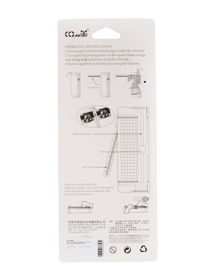 Резак для бумаги роликовый А4, до 3 листов, безопасное лезвие, длина реза 300мм, цвет белый