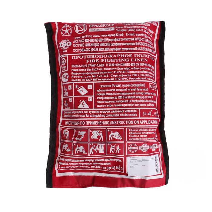 Противопожарное полотно, кошма пожарная, ПП-600-1, 1,5 х 2 м, упаковка ПВД, до 600°C