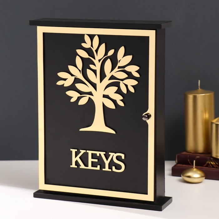 Ключница дерево "Дерево" чёрная, зеркальная 6х22,3х29,5 см