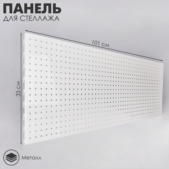 Панель для стеллажа, 35x101 см, перфорированная, шаг 2,5 см, цвет белый