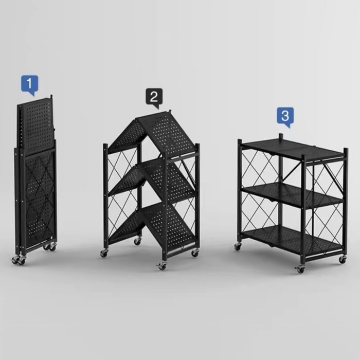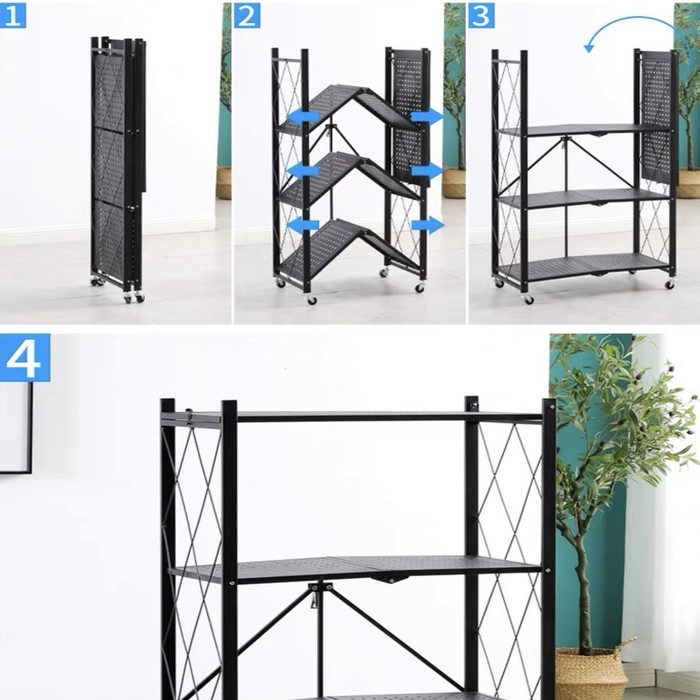 Стеллаж складной на колесах, 5 полок, 72×36×162,5см, цвет чёрный матовый за 7698.90 ₽ Купить оптом и в розницу на tijorat.com | Быстрая доставка | скидки