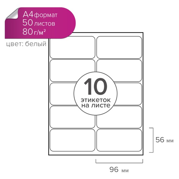 Этикетки А4 самоклеящиеся 50 листов, 80 г/м, на листе 24 этикетки, размер: 33.8 х 64.2 мм, матовые, белые