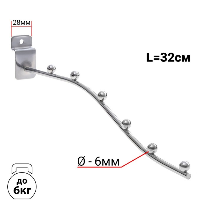 Кронштейн для экономпанелей, изогнутый, 6 шариков, d=6мм, L=32 см, цвет хром