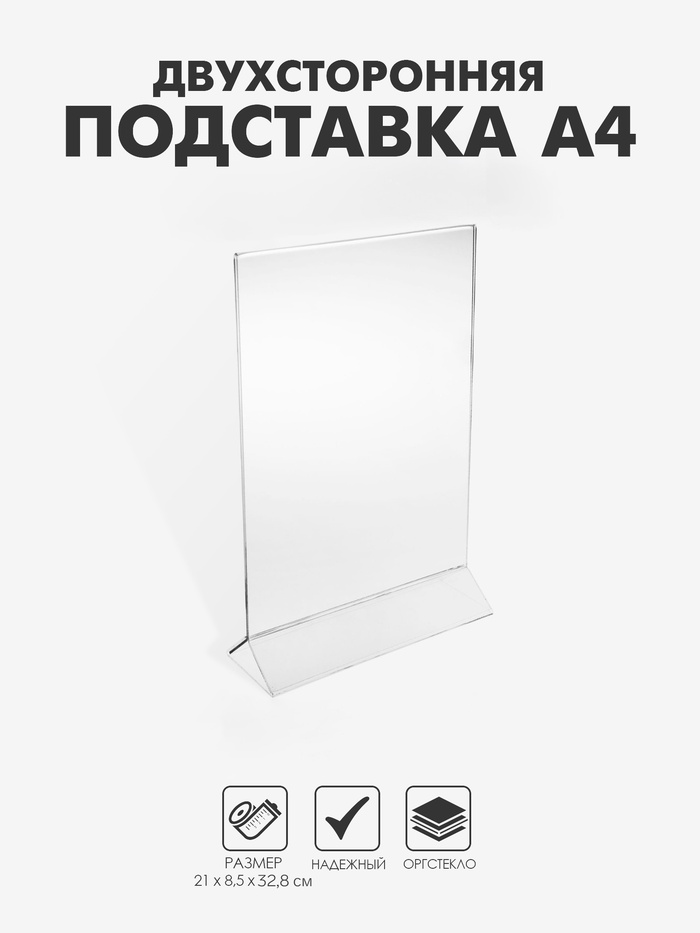 Двухсторонняя подставка А4, оргстекло 2 мм в защитной плёнке