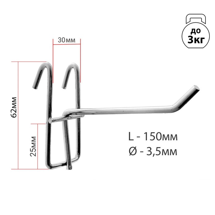 Крючок на сетку одинарный, d=3,5 мм, L=15 см, цвет хром